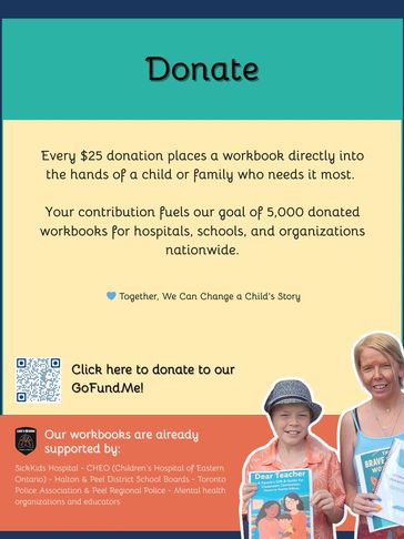 The momentum is growing fast! Our workbooks have already caught the attention of: SickKids Hospital, CHEO (Children’s Hospital of Eastern Ontario), Halton District School Board, Peel District School Board, Toronto Police Association, Peel Regional Police, Multiple mental health organizations, community groups, and educators nationwide. These connections are opening doors for widespread impact - and your support can help us reach the finish line.